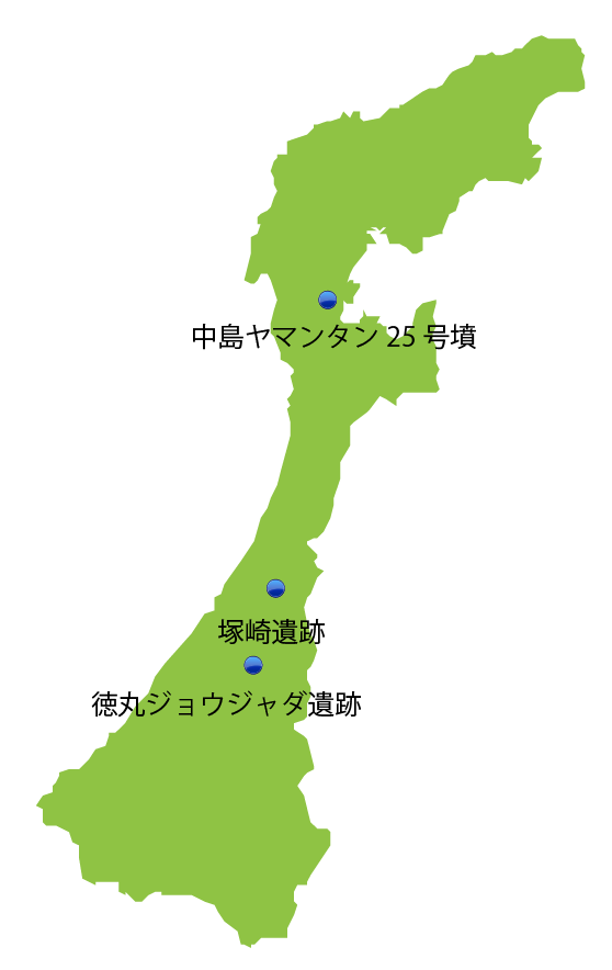 石川県の主な玉出土遺跡位置